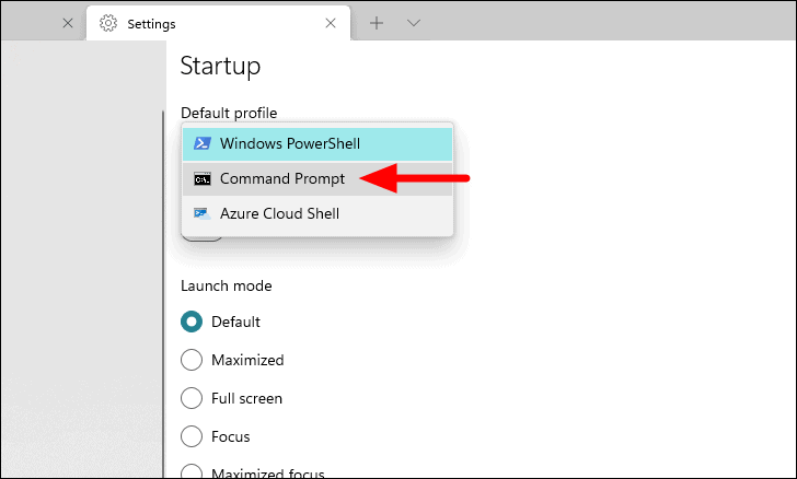 Now, when you open Windows Terminal, it will default to Command Prompt.
