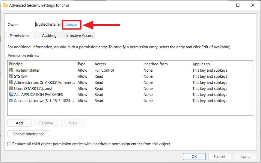 - Check the box labeled Replace owner on subcontainers and objects, then click Apply and OK.