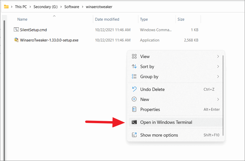 Now, when you use the Open in Windows Terminal option, it will launch Command Prompt in the selected folder.