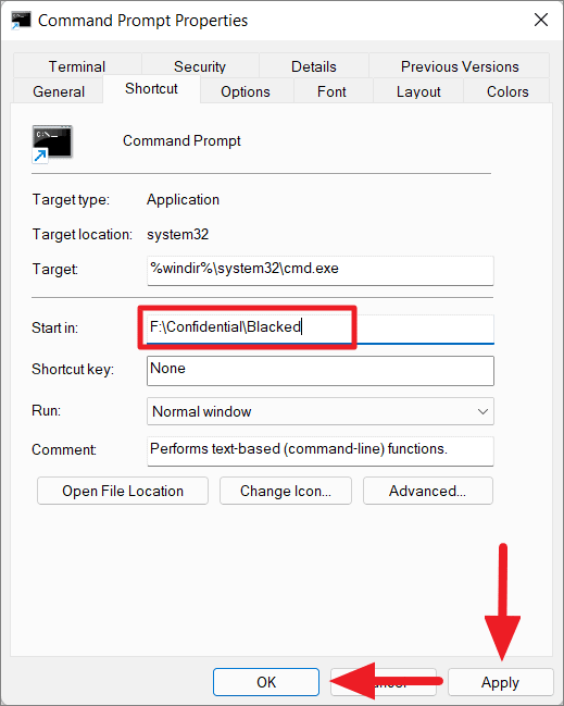 F:\Confidential\Blacked). - Click Apply and then OK.