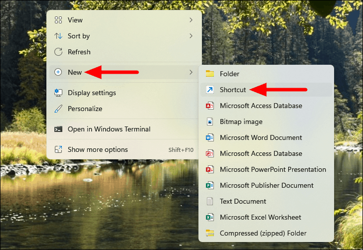 - Hover over New and select Shortcut.