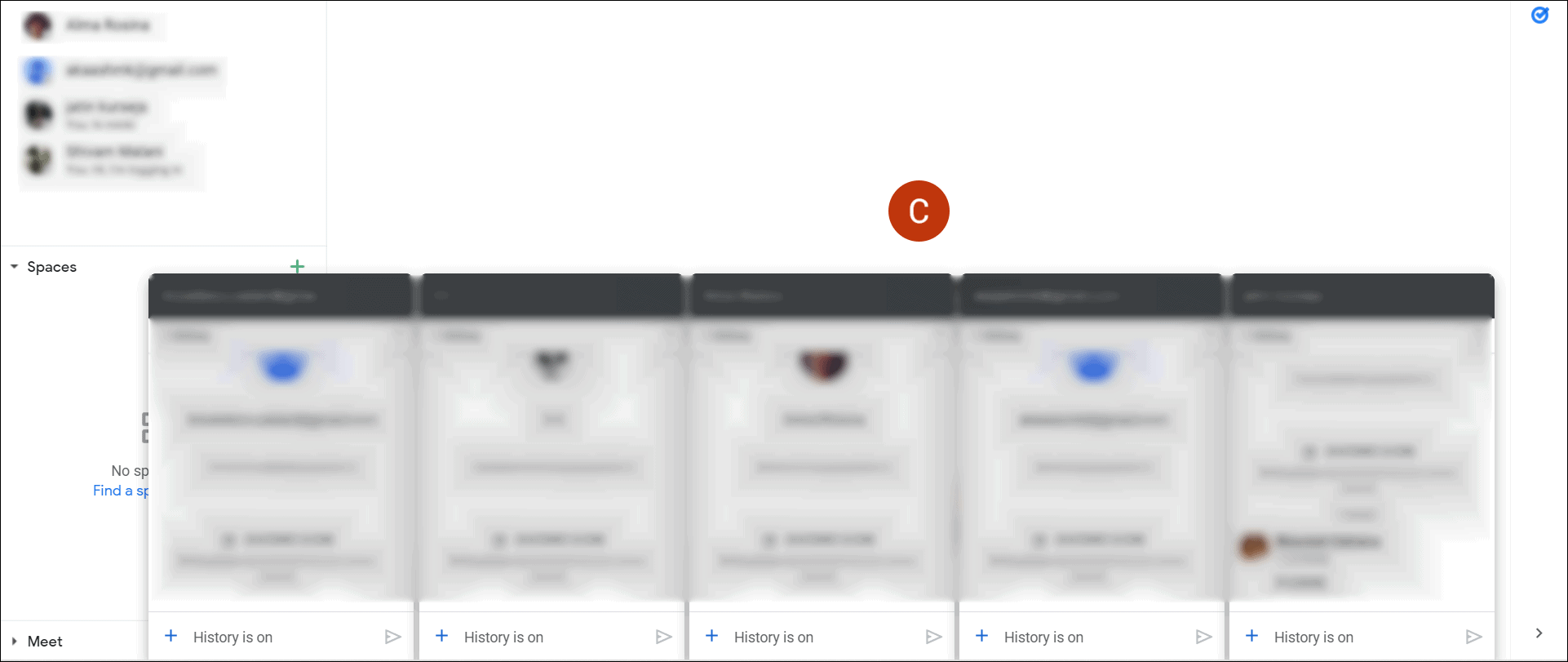 The chosen conversation will instantly pop up on your Google Chat window.