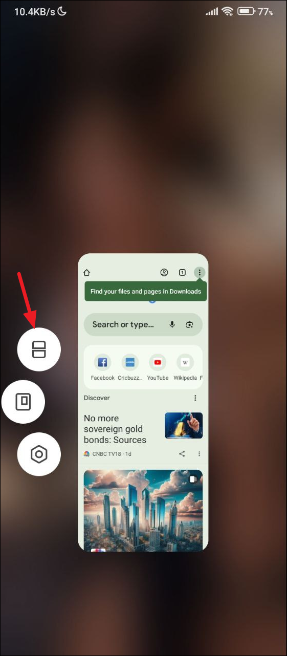 - Next, tap on the Chrome icon and you will get the 'split screen' option. Alternatively, the option may appear next to the Chrome window. Tap on it and your screen will separate into two halves, with Chrome moving to the upper half.