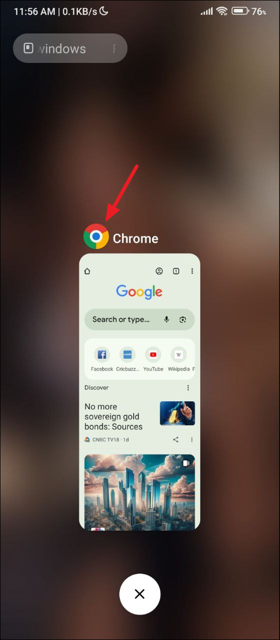 - Launch Google Chrome on your Android device and then swipe up from the bottom and hold to view all recent apps.