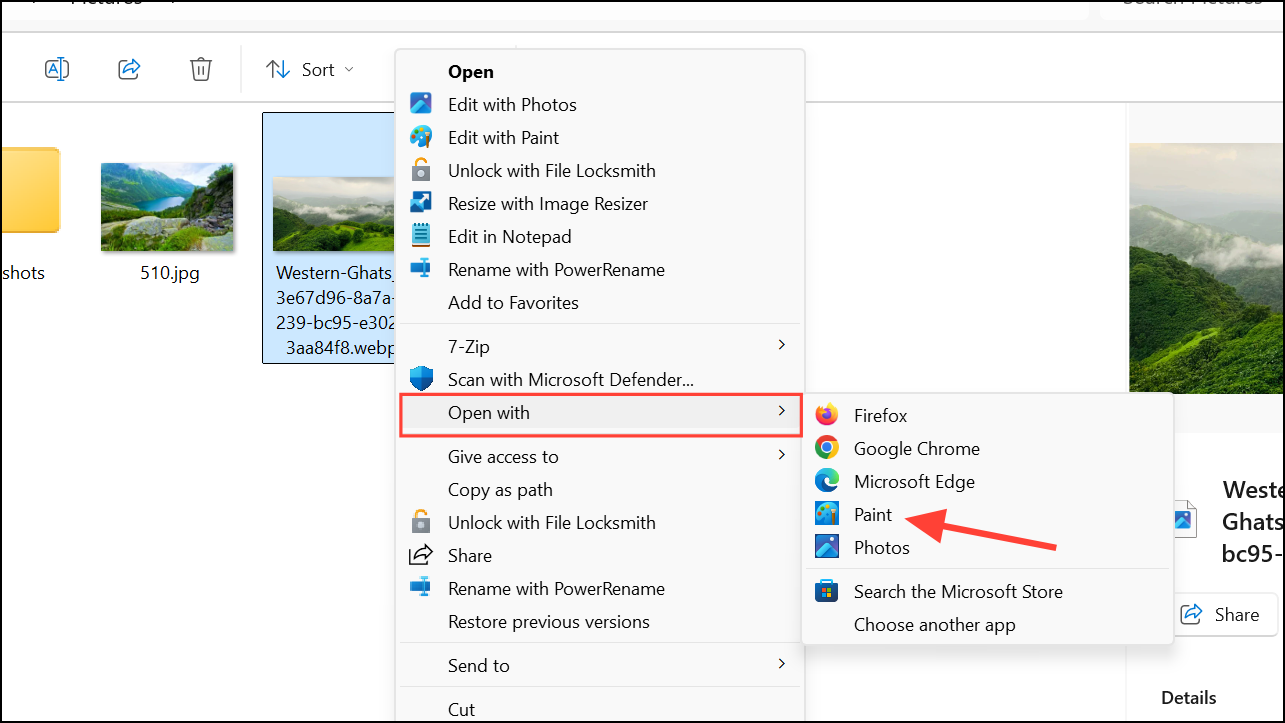 - Right-click the image, go to Open with, and select Paint.