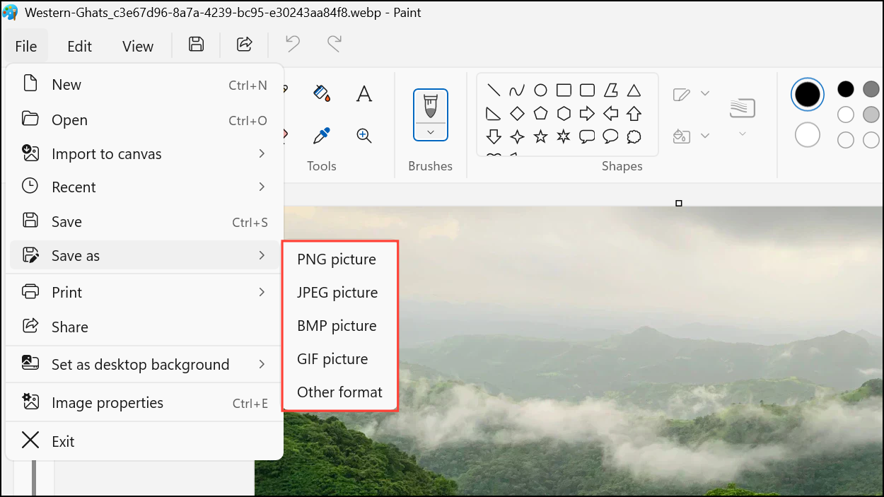- Once the WebP image opens in Paint, you can edit it as you want and even save it in another format, such as JPEG, PNG, or other formats.