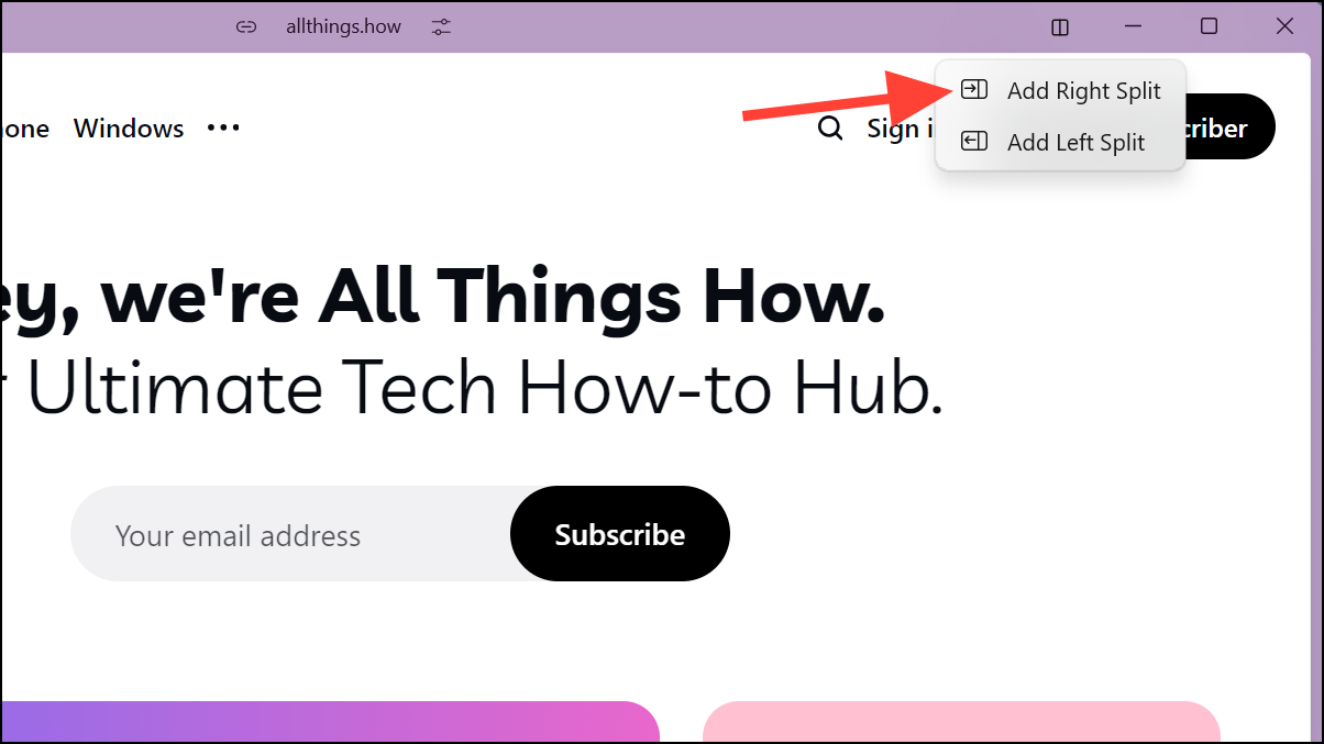 - Then, select 'Add Right Split' or 'Add Left Split' depending on which side of the screen you want to add the other website to.