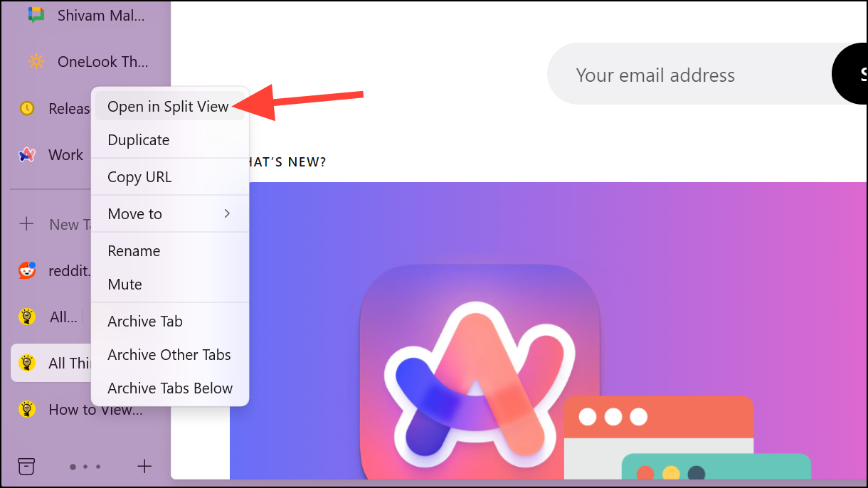 There are multiple ways to open tabs in Split View in Arc Browser on Windows.