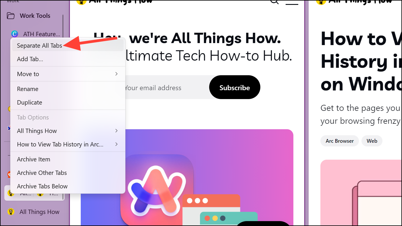 Once the tabs are open in Split View, there are a few things you can do. Currently, you cannot resize the tabs in Arc Browser on Windows.