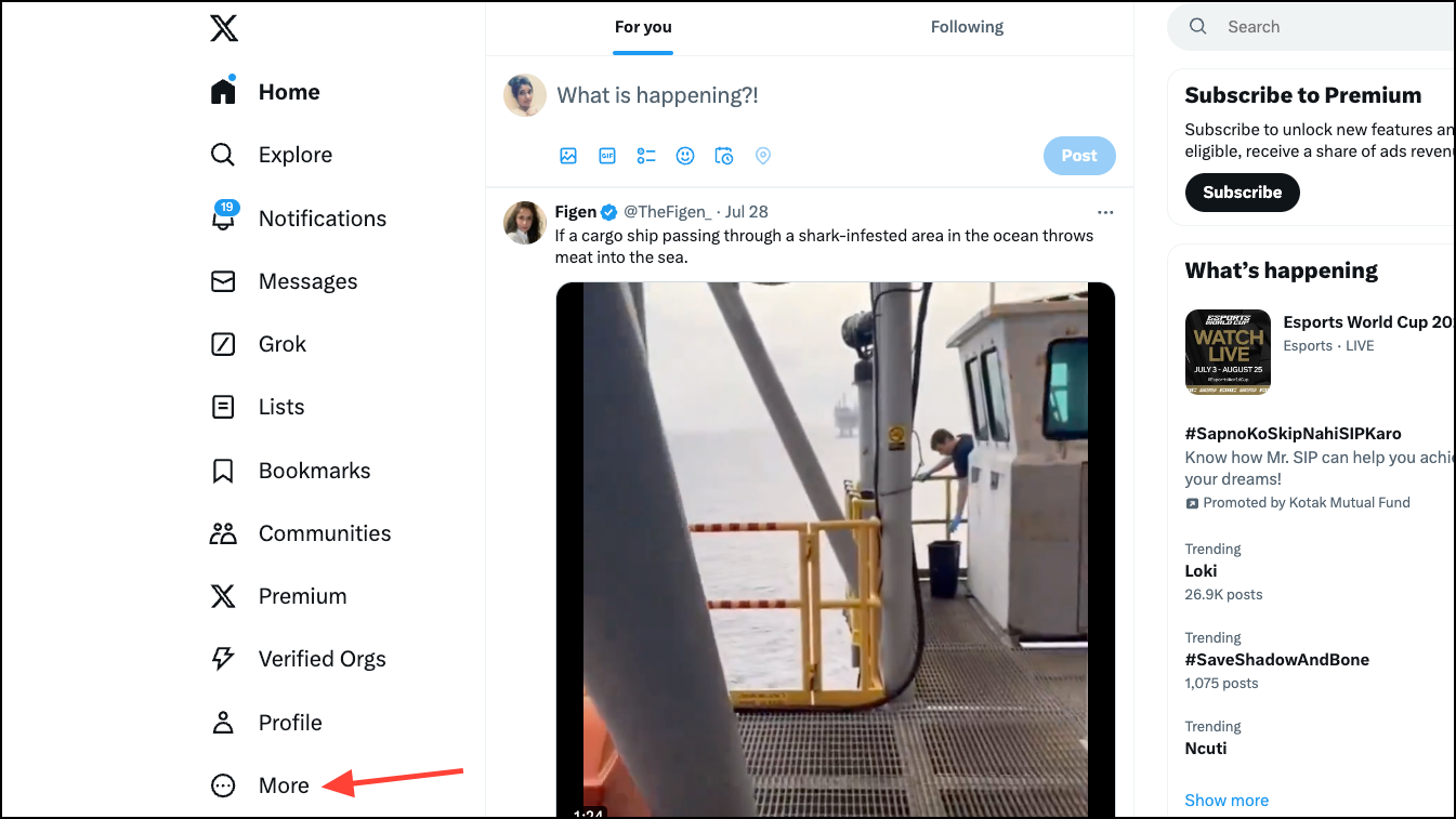 - Navigate to x.com from your browser and sign in to your account. Then, click on 'More'.