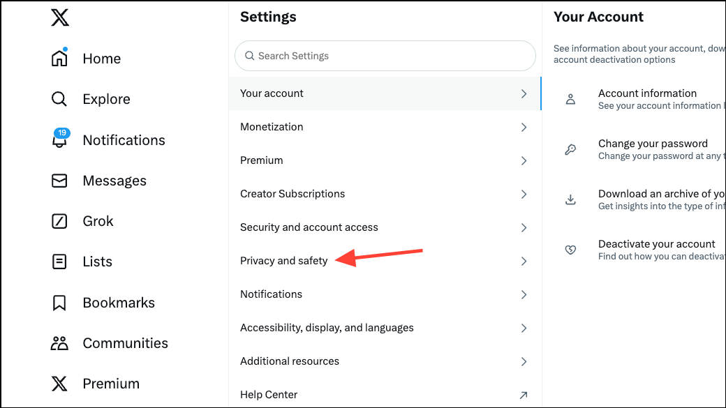 - Then, go to 'Privacy & Safety'.