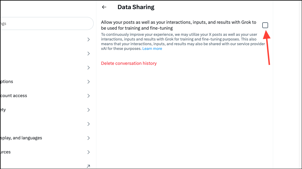 - You can also delete your conversation history with Grok (if any) by clicking the 'Delete conversation history' button if you want.