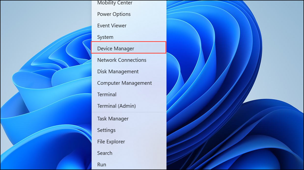 Step 1: Right-click the Start button and select "Device Manager."