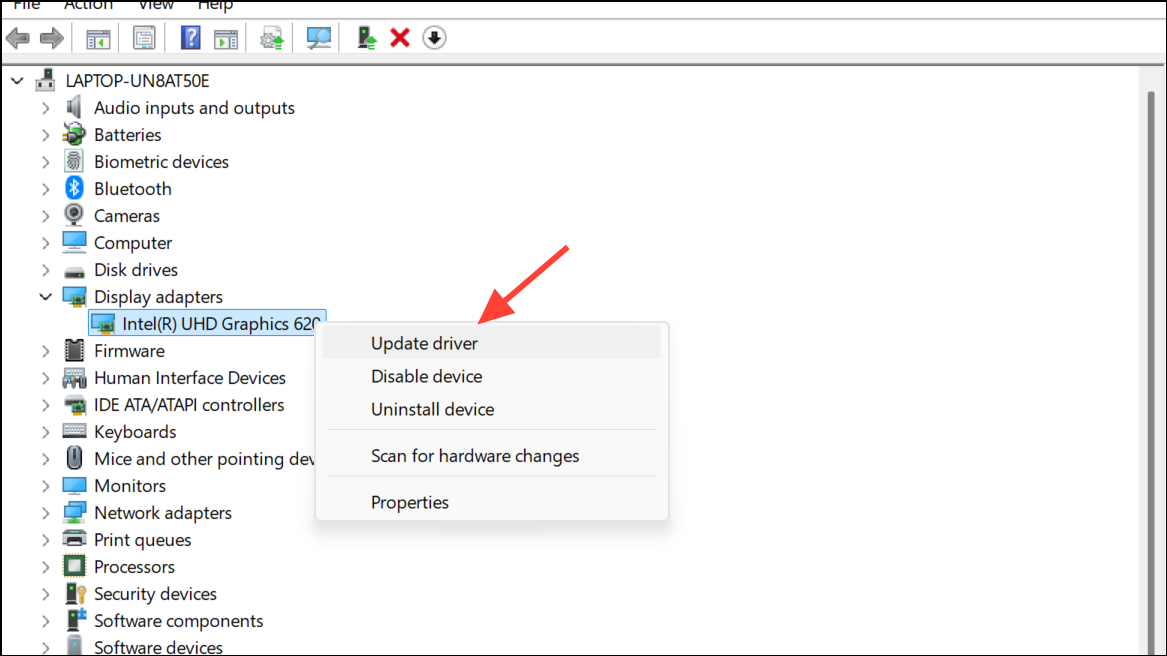 Step 2: Expand the "Display adapters" section, then right-click your GPU and select "Update driver."