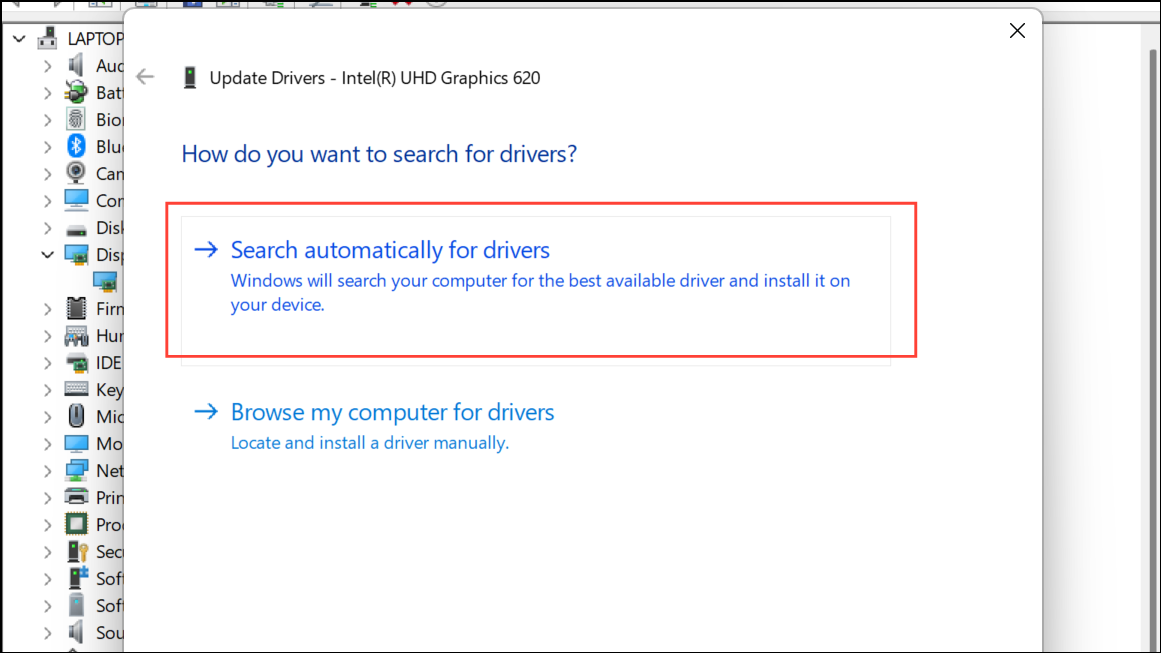 Step 3: Choose "Search automatically for updated driver software." Windows will check and install any available updates.