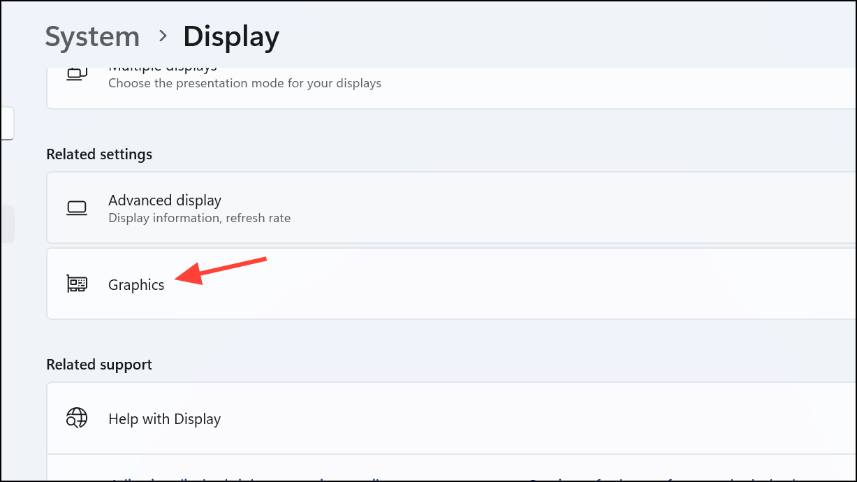 Step 4: From the main Display settings, select "Graphics," choose your game, click "Options," and select "High Performance."