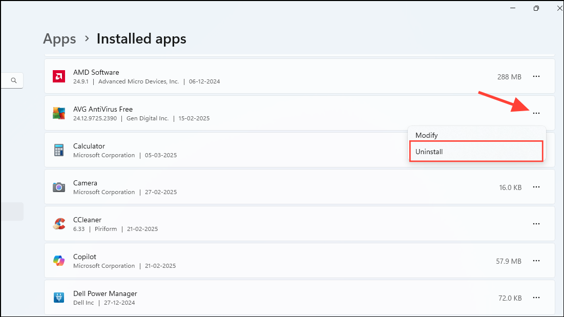Step 2: Go through the list and identify applications you no longer use. Click the three-dot menu next to each app and select "Uninstall."