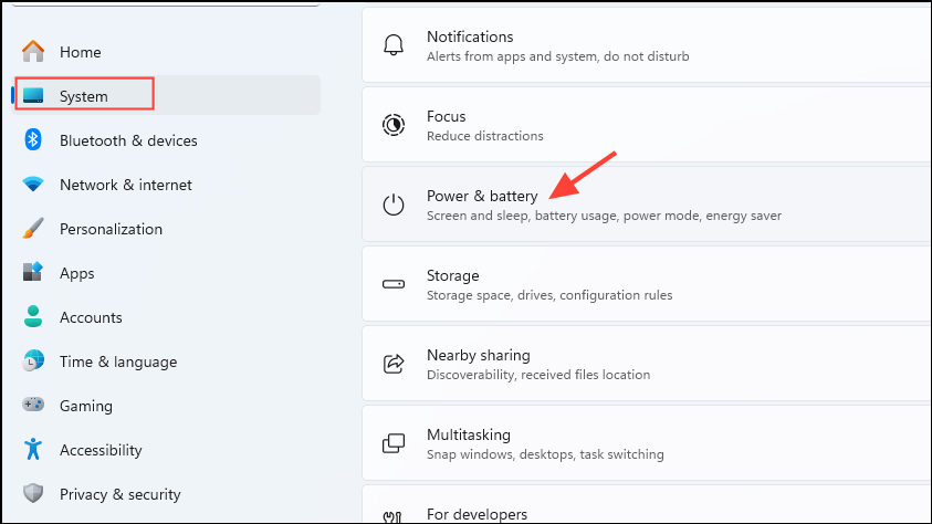 Step 1: Open the Settings app by pressing Windows key + I, then select "System" and click "Power & Battery."