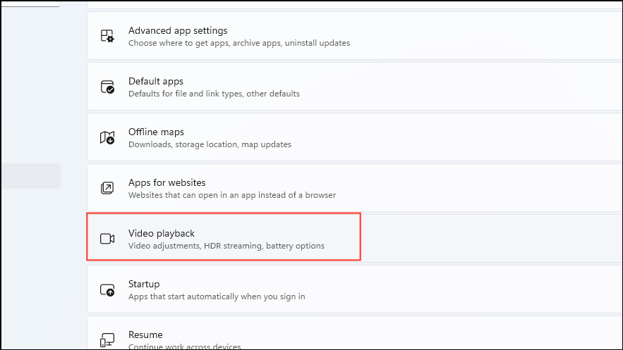 - On the Apps page, click on 'Video playback'.