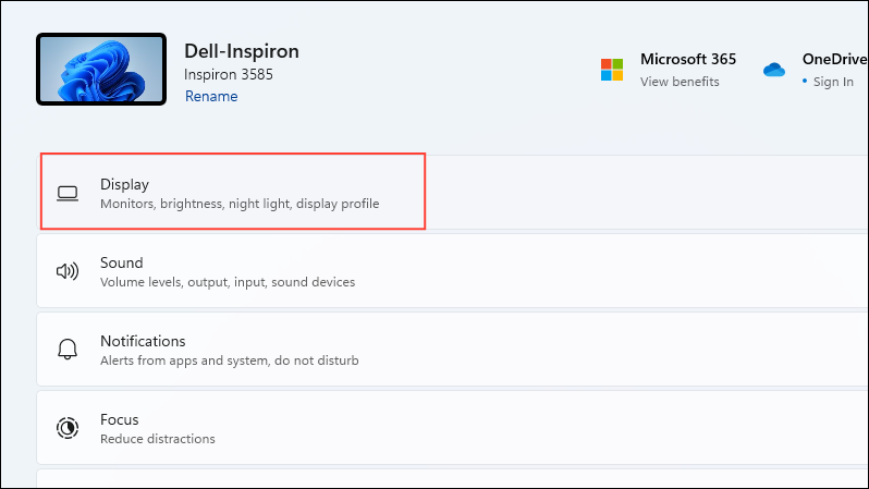 - On the System page, click on 'Display'.