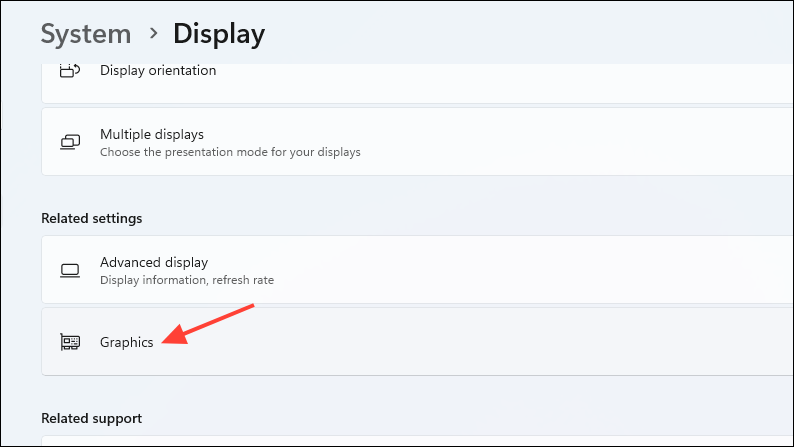 - Scroll down to the 'Related settings' section and click on 'Graphics'.