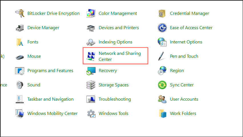 - Open the Control Panel from the Start menu and click on 'Network and Sharing Center'.