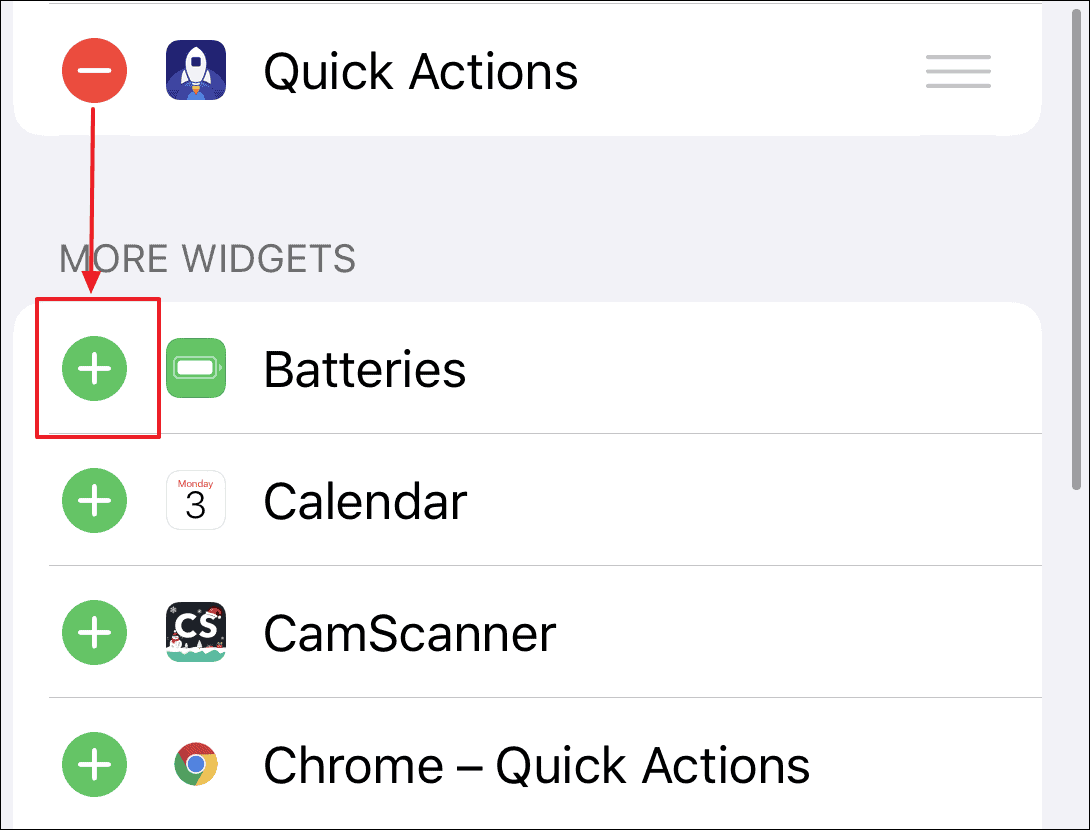 Other apps on your iPhone which supports widgets will appear under the “More widgets” section. Tap the plus ‘+’ sign to add any widget to your active widgets list.