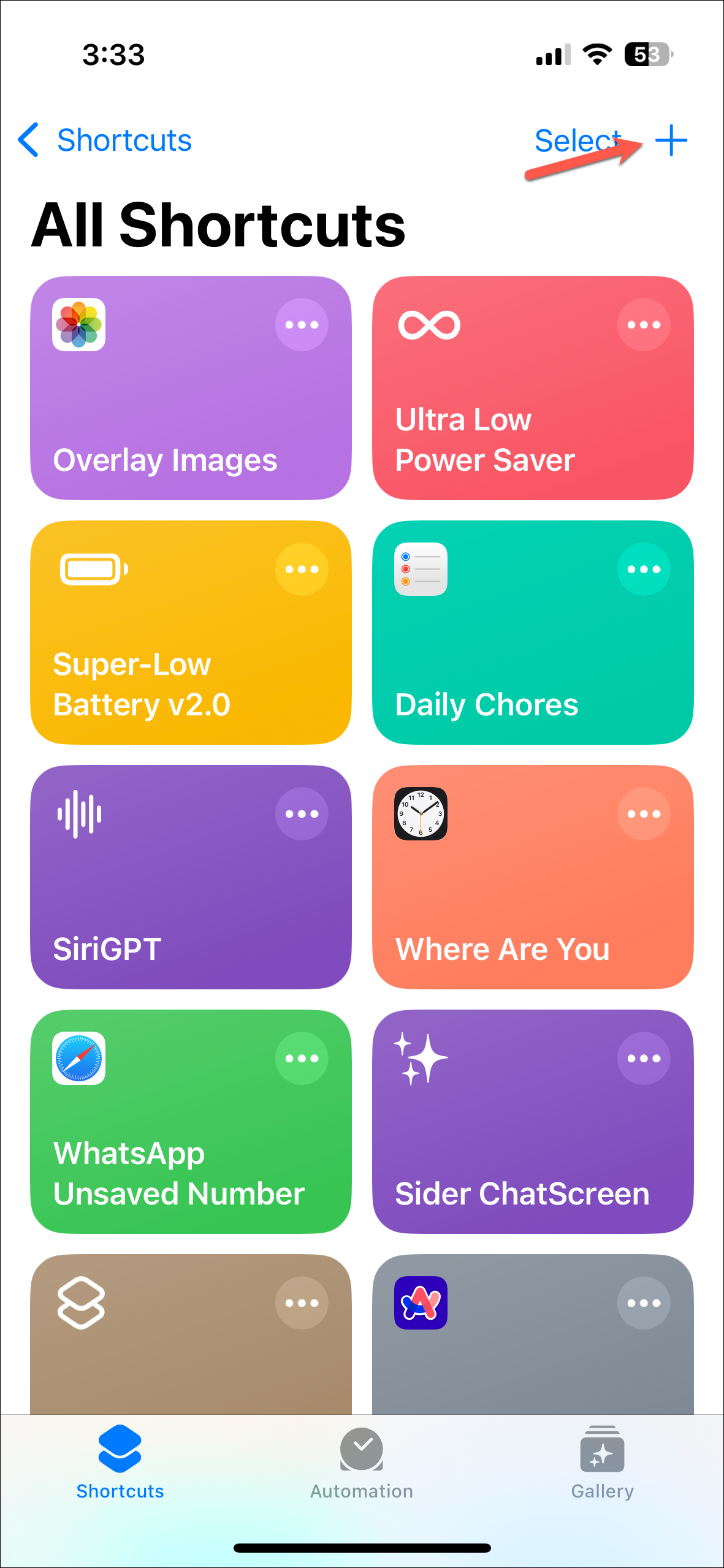 - Tap on the '+' button to add a new shortcut.