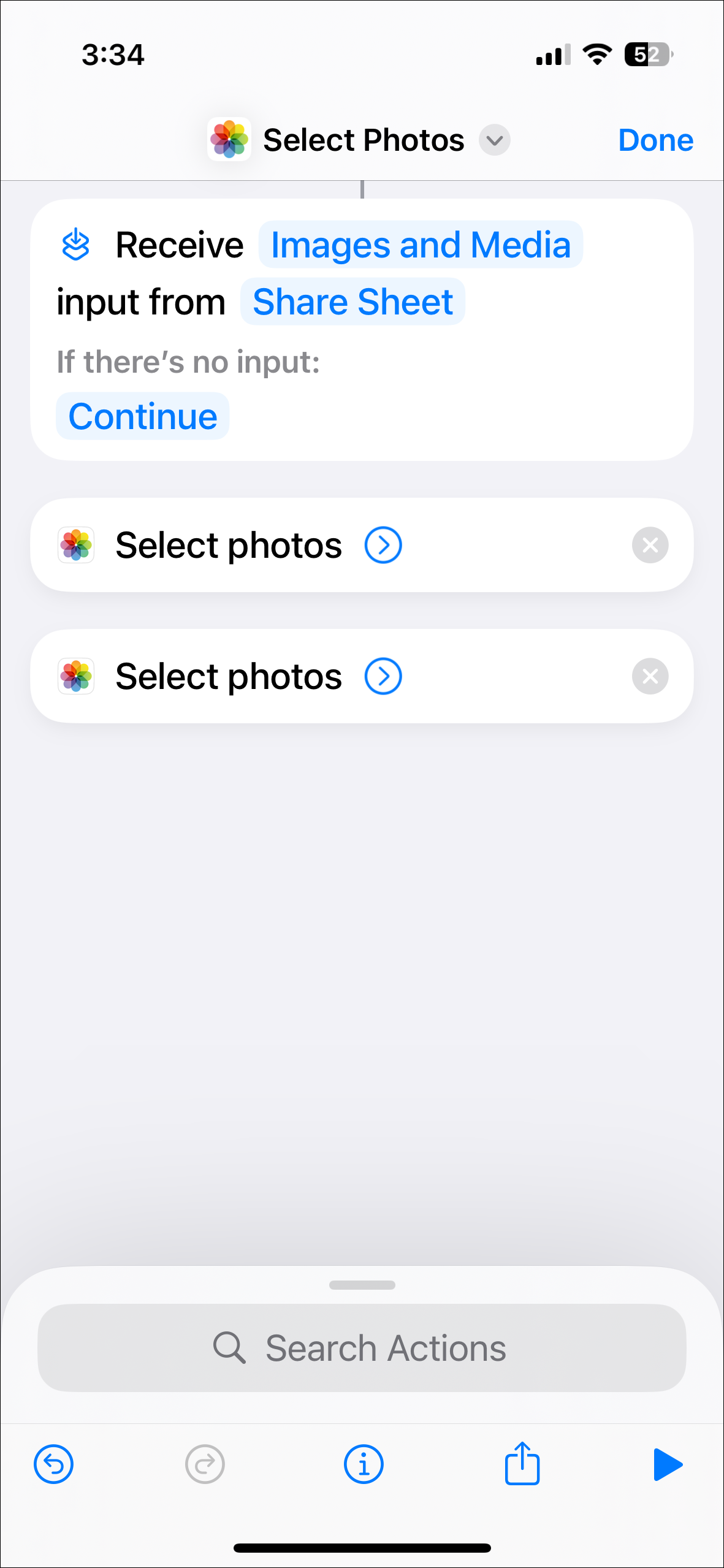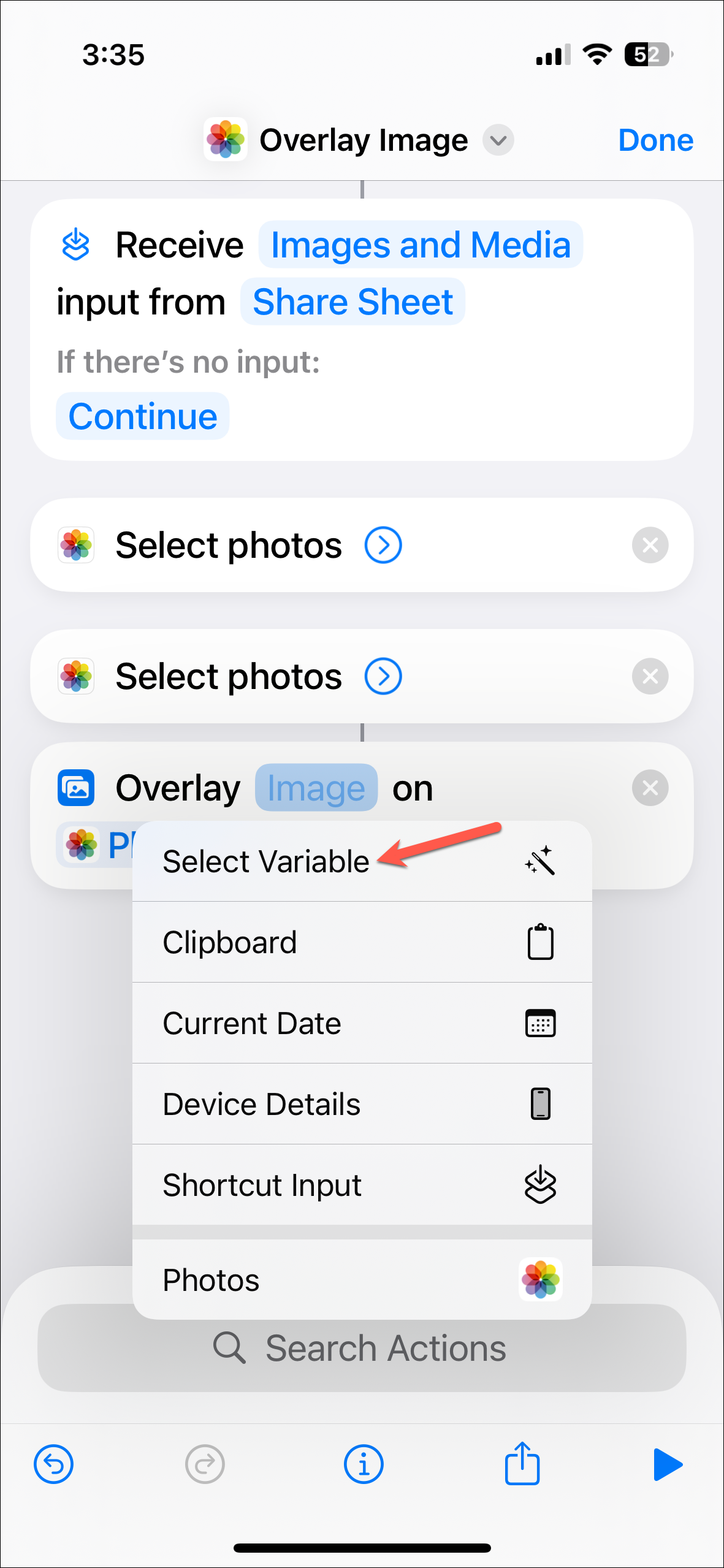 - Now, add another 'Select Photos' action using the steps 7 & 8 above.