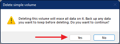 Confirm the deletion by clicking Yes in the warning dialog box.