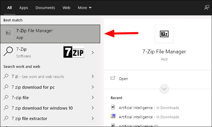 After you have installed 7-Zip on your computer, search for it in the ‘Start Menu’ and launch it.