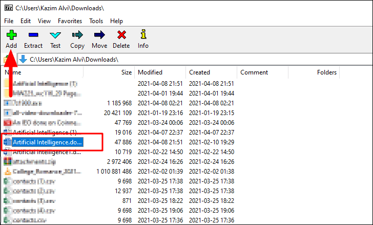 In the ‘7-Zip’ app, browse the system and locate the file that you want to convert to ‘.zip’ format, and add a password.