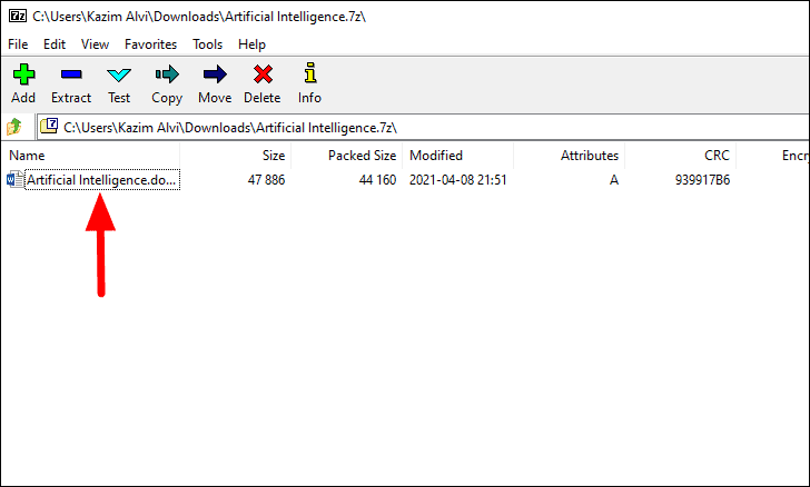 Browse to the location where you added the password-protected zip file and then double-click on it to open in the ‘7-Zip’ app.