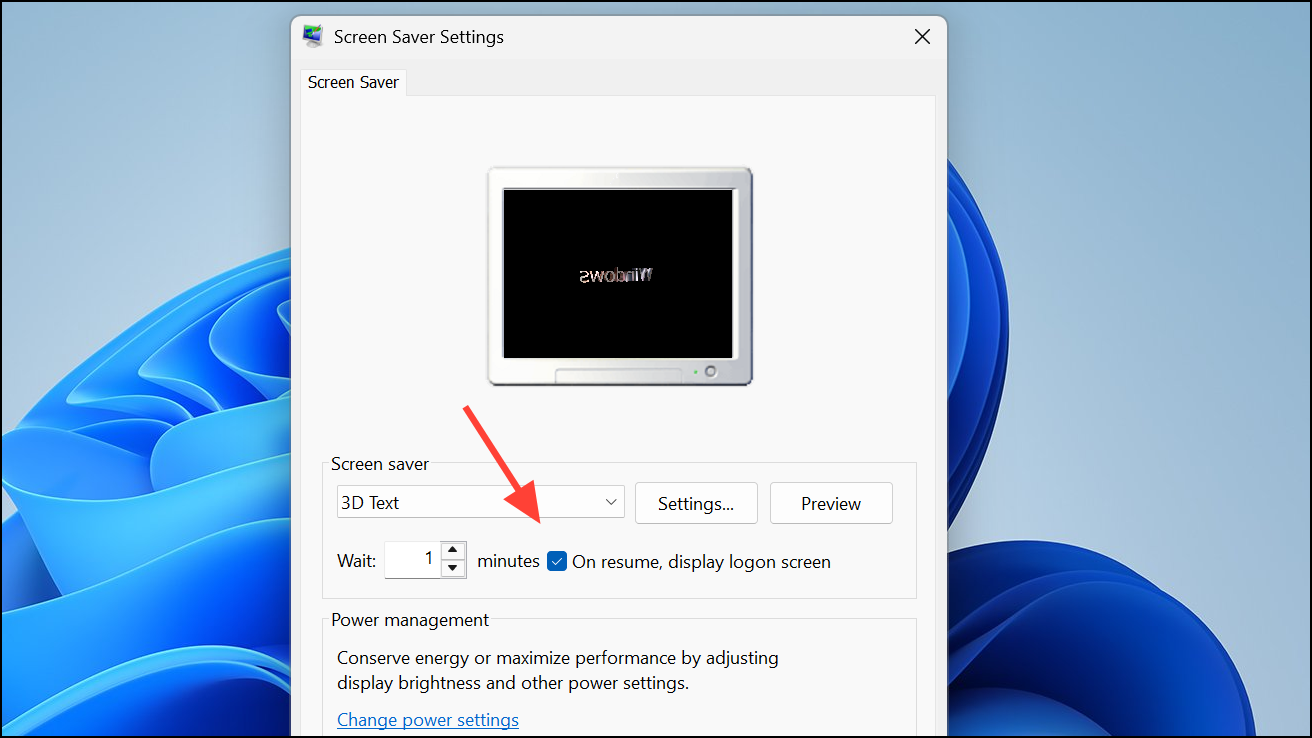 Step 4: To require a password when resuming, check the box labeled On resume, display logon screen. This option ensures that Windows will prompt for your sign-in password when the screensaver is dismissed.
