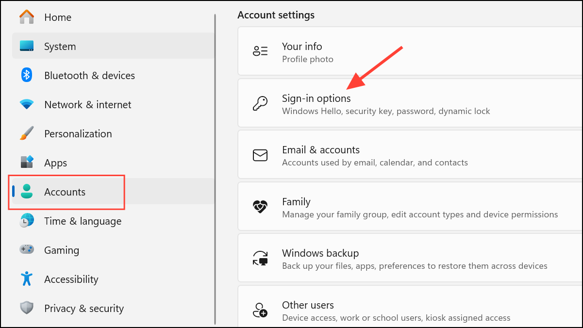 Step 1: Go to Settings > Accounts > Sign-in options.