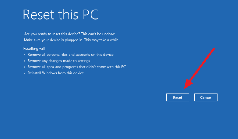 Step 10: Click 'Reset' to start the clean installation process.