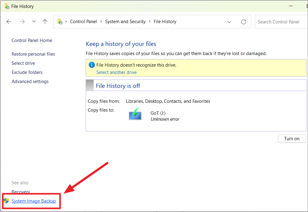 Step 2: In the Control Panel, click on 'System Image Backup' located at the bottom-left corner.
