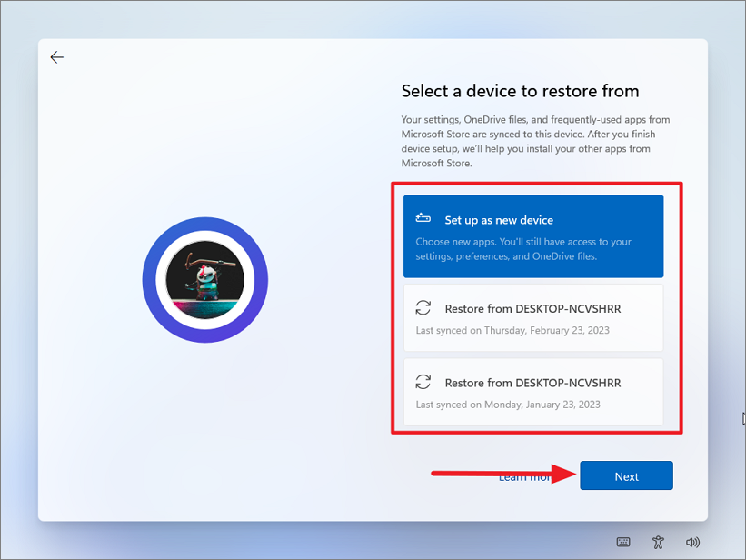 Step 9: Decide whether to restore from a previous backup or set up as a new device. For a clean start, select 'Set up as new device' and click 'Next'.