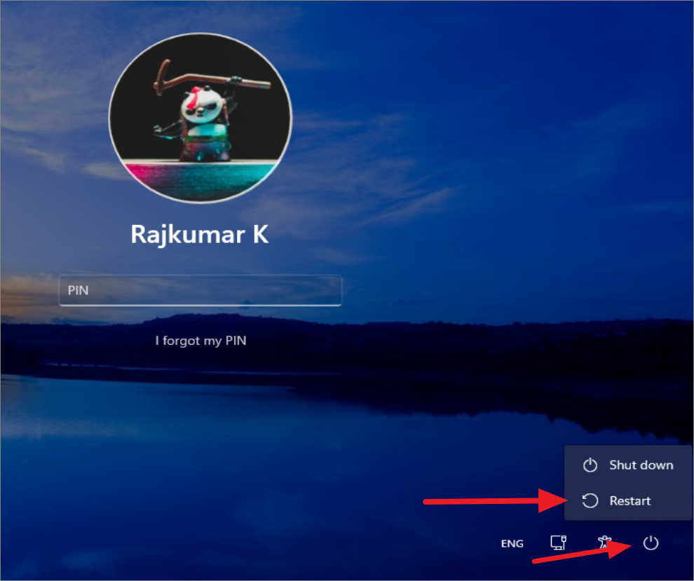 Step 1: Turn on your computer and reach the sign-in screen. Click the power icon at the bottom right, hold down the Shift key, and select 'Restart'. This will boot your PC into the Windows Recovery Environment (WinRE).