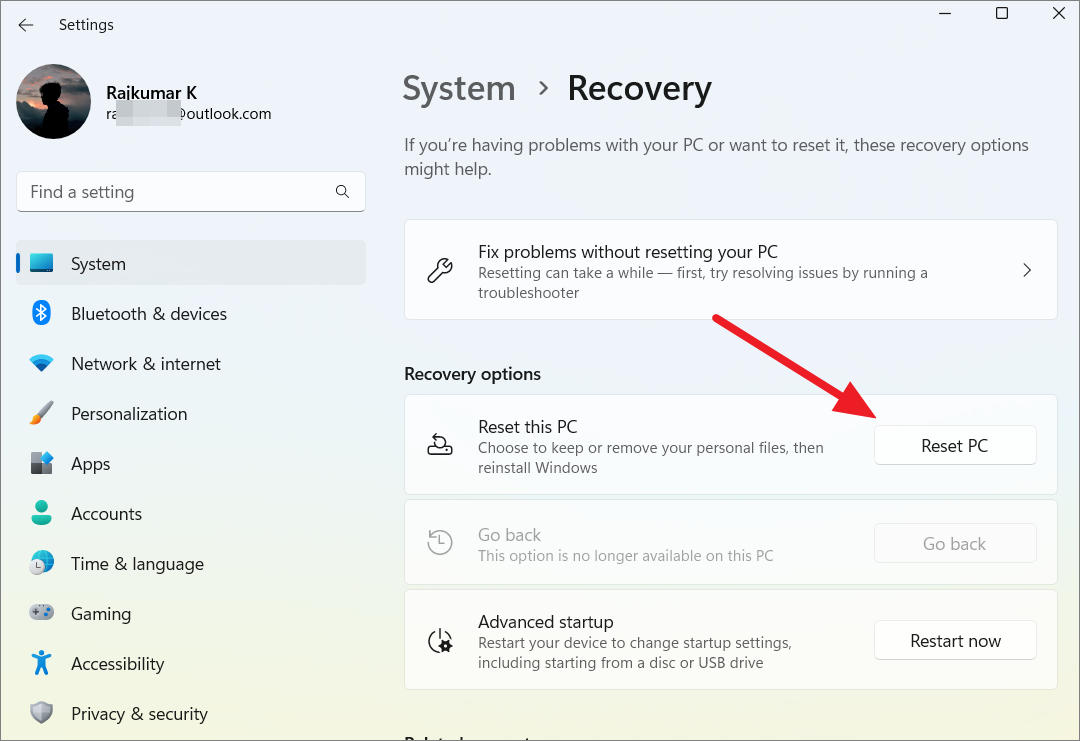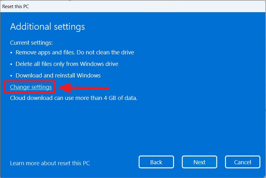 Clean install Windows 11 by resetting the PC from Windows Settings