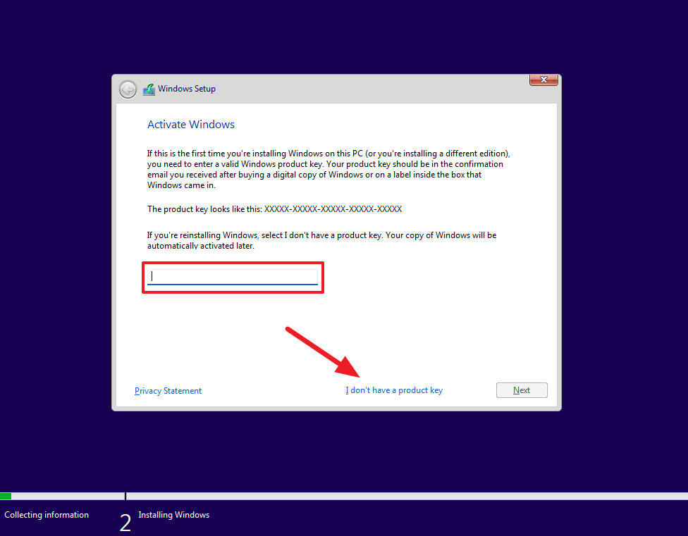 Step 5: If prompted, enter your product key. If you don't have one, click 'I don't have a product key' to proceed.