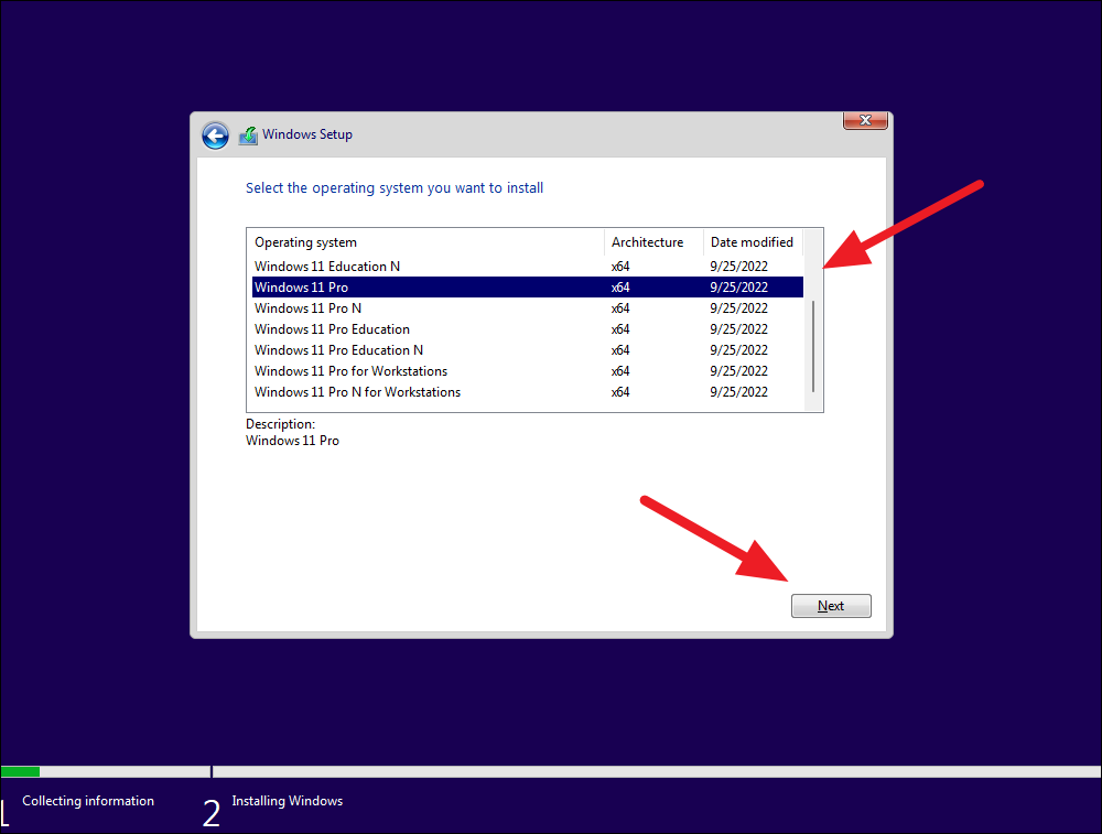 Step 7: Select the edition of Windows 11 you wish to install and click 'Next'.