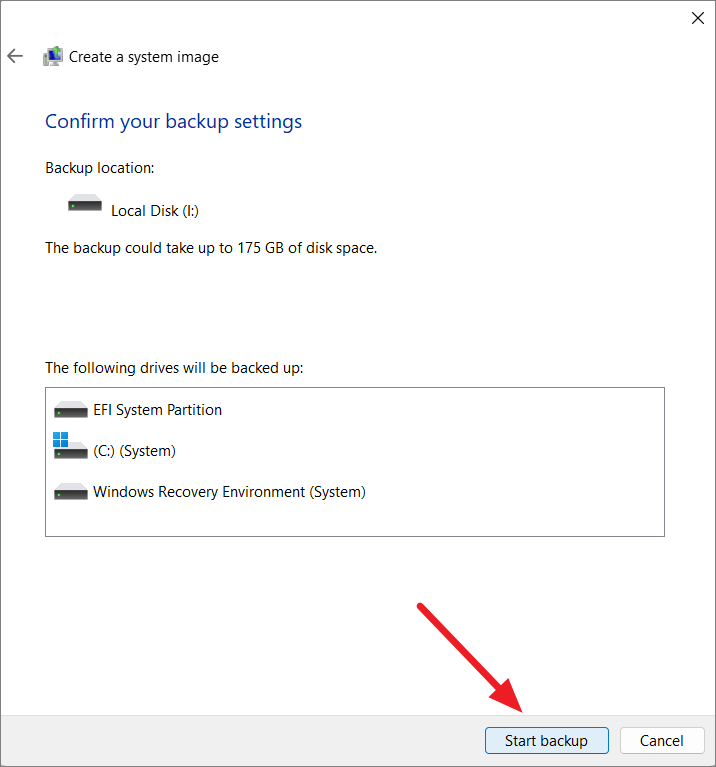 Step 6: Click 'Start backup' to initiate the process.