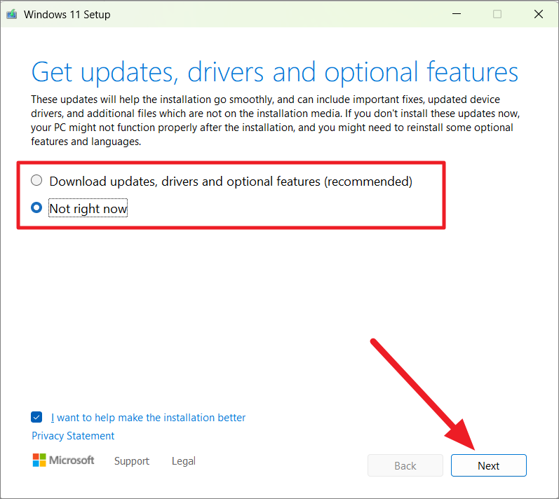 Step 3: Choose 'Not right now' and click 'Next'.