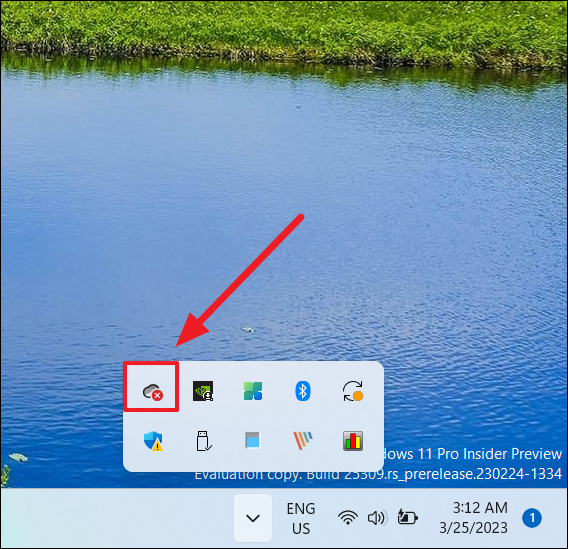 Step 1: Click the 'OneDrive (cloud)' icon in the system tray.