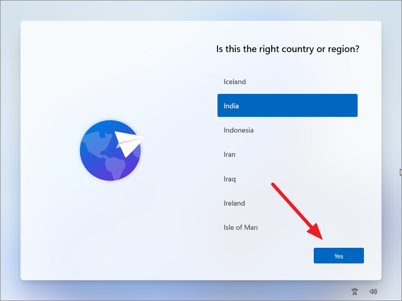 Step 1: Select your country or region and click 'Yes'.