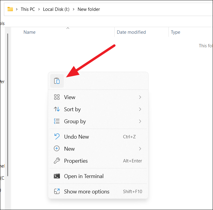 Step 5: Navigate to your external drive, right-click on an empty space, and select 'Paste' to copy your files over.