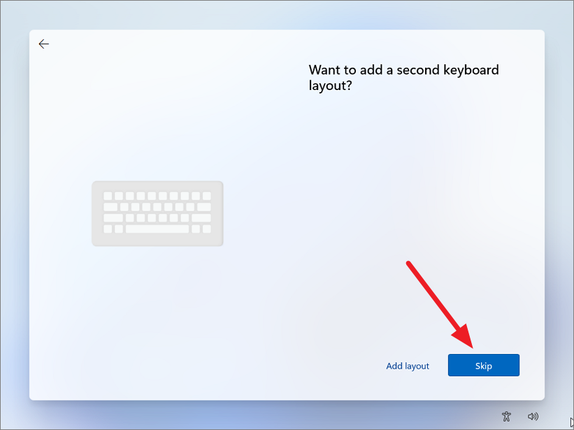 Step 3: If you don't need a second keyboard layout, click 'Skip'.