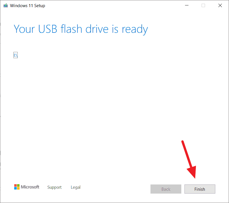 Step 7: Wait for the tool to create the installation media. Once finished, click 'Finish'.