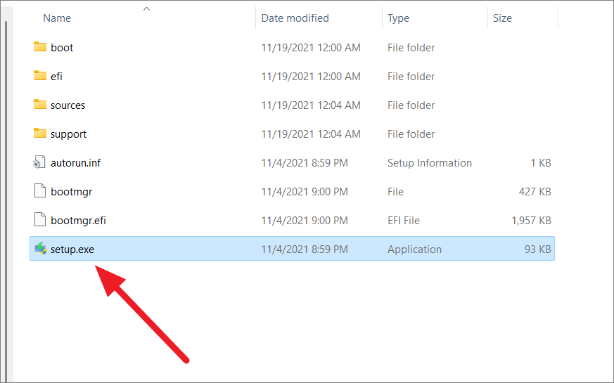 Step 1: Insert the bootable USB drive or DVD into your PC. Open File Explorer, navigate to the installation media, and double-click 'setup.exe' to start the setup.